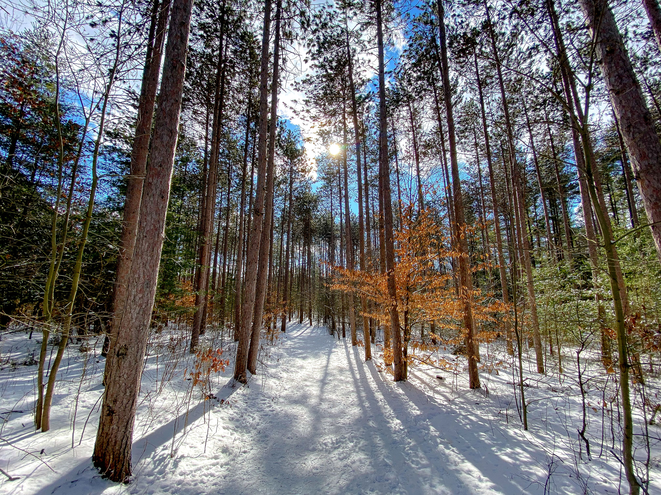 You'll wind through a stately red pine plantation, sections of mixed forest, and open areas. This area is a popular destination for cross country skiers and those seeking a simple nature trails.